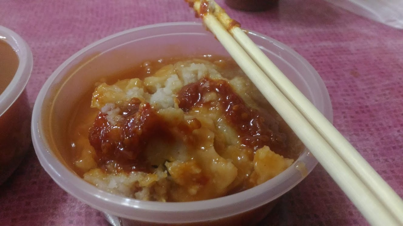 含泪之下 带的钱不够 就只好割舍芋头肉圆 改 芋头油裸 来的时候还真的分不出来这两碗的差别,只是对碗很好奇,没有用贴膜纸碗而用这种百分百可以回收的塑化碗 一吃果然惊喜 , 辣椒酱及酱料到味外,扒开后果然是满满的肉及配料 最夸张的 竟然有鸟蛋,而且不像其他的是薄薄的一层就结束了,难怪要用这么厚实的碗公来装 口味真的很不错 。。。。难怪 评分如此高 因此一定要去尝尝看 好客肉圓永和店。 234新北市永和區福和路76巷2號 #好客肉圓 #馬庫斯 #转弯角