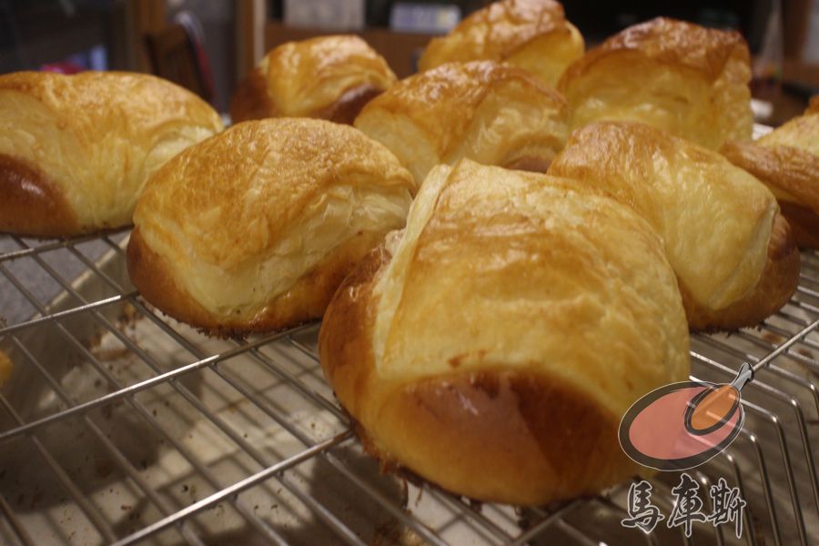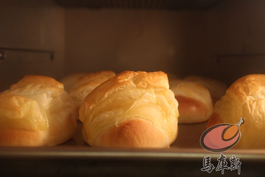 一般來說,在進爐之前,必須讓其解凍及鬆弛,否則會發生縮小及油漏的現象。烤爐必須設定為高溫環境,同時最好能在入爐後噴上蒸汽來防止表皮過於乾燥燒焦以至於形成硬皮阻礙膨脹的現象。上火大下火小的設定模式。約是 175 ~ 230 °C 的方式去設定。烤前可以放張不粘的烘烤紙張在產品上以求平均高度,同時,在不繼續膨脹取出烘烤紙後,可以用下降溫度到 175°C 的方式烘烤到你要的顏色。