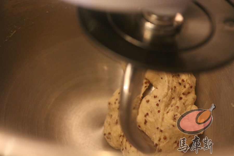 高筋麵粉,藜麥粉,藜麥籽,糖,鹽,酵母,水,牛奶,奶油